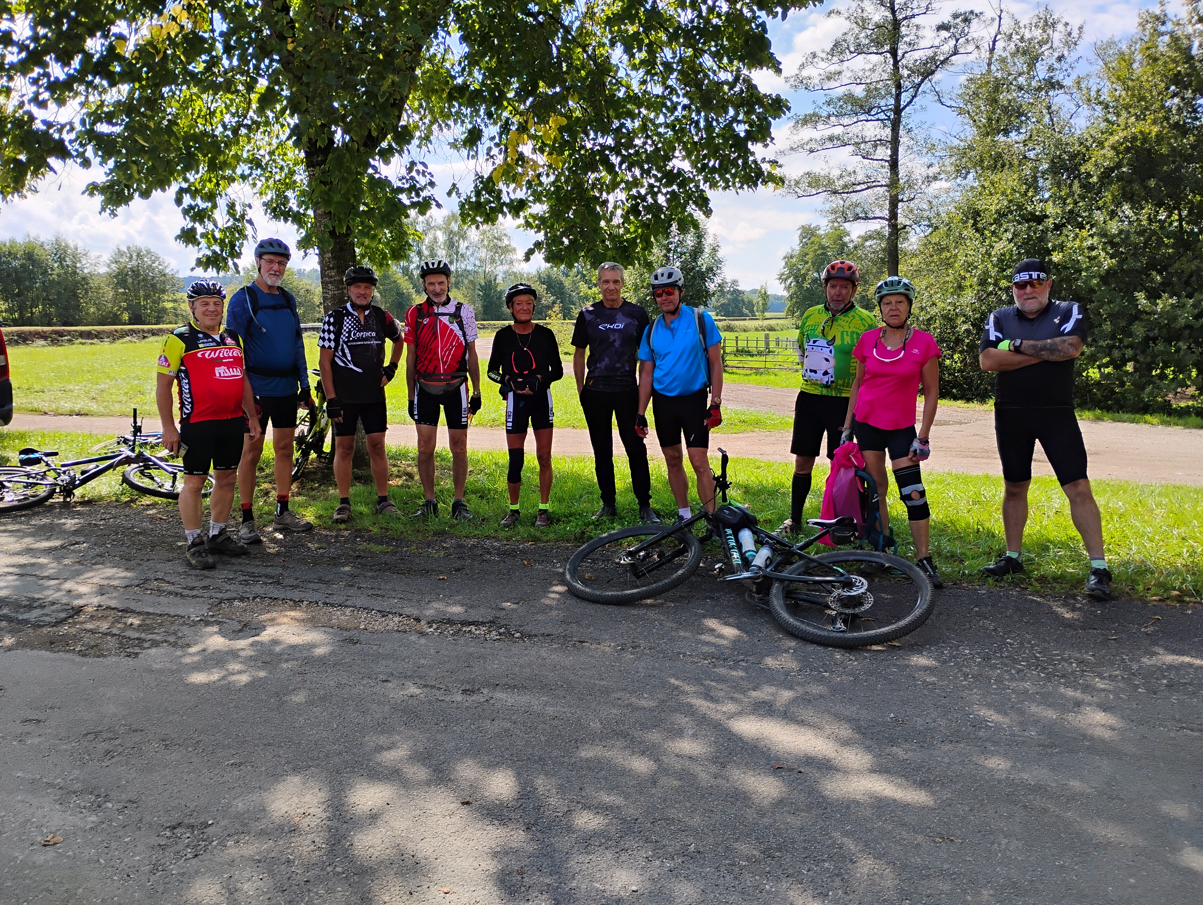 Au départ de Brebotte près du canal nous nous sommes retrouvés 11 cébélistes, Richard nous a préparé un circuit sympa dans le Sud du territoire qui traverse les villages du Sundgau terrifortain, faire un petit tour des étangs Verchat avec ses cabanes dans les arbres et sur l’eau appelé « Domaine des Grands Reflets, une idée pour un week-end paisible sans Wifi et sans téléphone !!! Ce coin de notre territoire est aussi riche en patrimoine, nous sommes passés sous le Château de Florimont qui domine le village mais le point de vue est un peu envahi par la végétation et nous ne sommes montés au-dessus. Une petite pause à l’ancienne ferme du Fay pour recharger les batteries avant de faire une incursion en Suisse dans le secteur de Boncourt avec la villa Burrus et son parc, Le Mont Renaud et sa tour panoramique ainsi que le parc des bisons (sans bisons mais avec des chevaux) avant de retrouver notre France à Delle. Ensuite un retour tranquille par la piste cyclable barrée… jusqu’à Thiancourt puis beaux chemins vers Grandvillars, Froidefontaine et pour terminer le long du canal sur le sentier des pêcheurs.