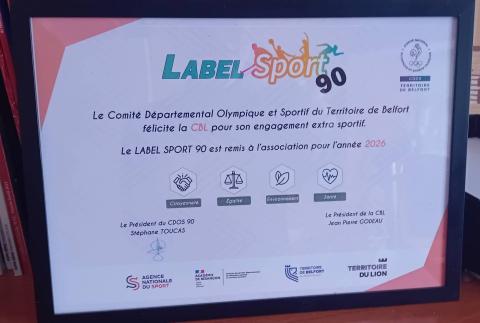 Label 90 obtenu par la CBL remise du diplôme le 17 février 2026 par le CDOS 90